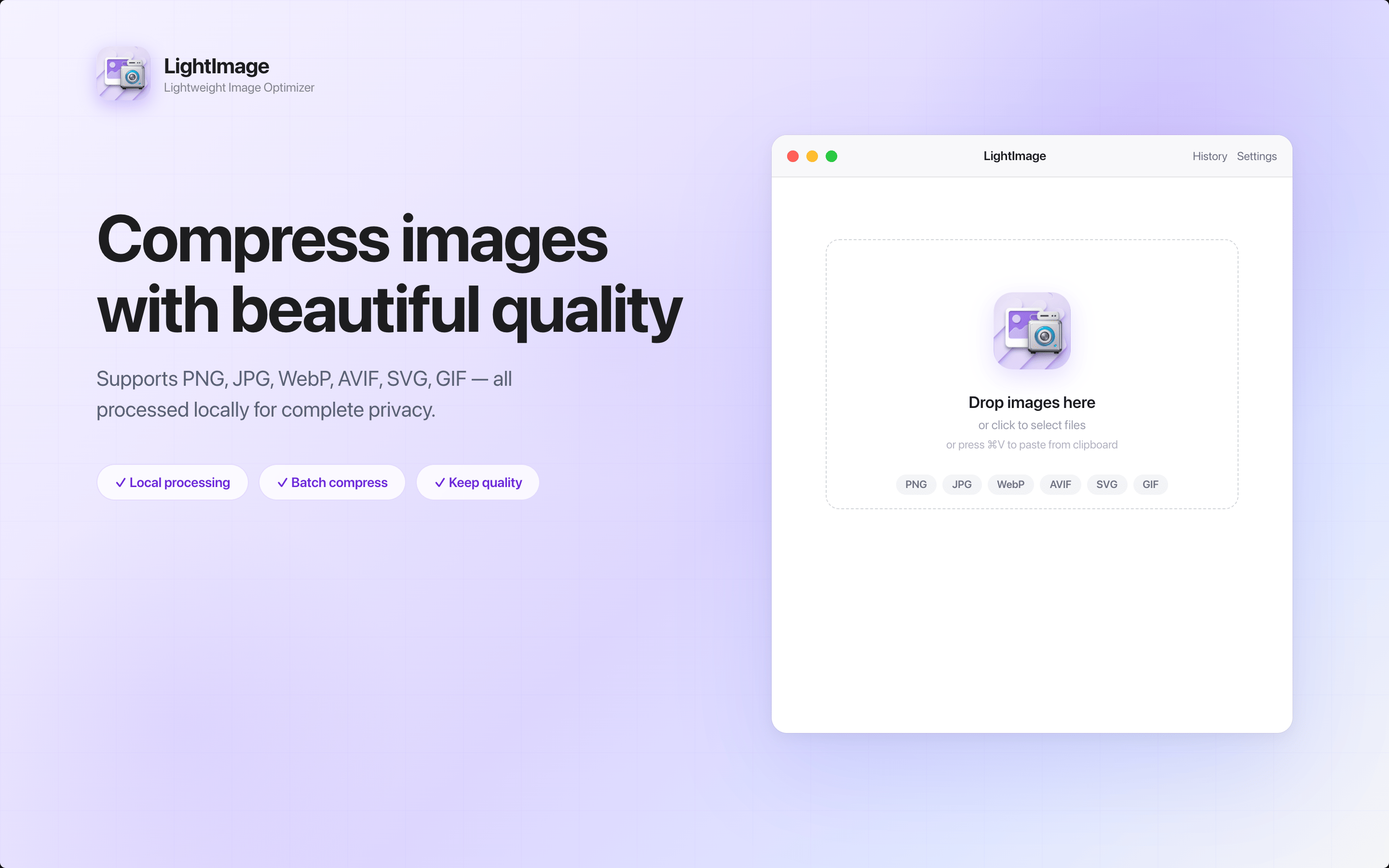 LightImage helps you run batch compression, format conversion, and export control on macOS, so everyday image tasks stay fast and clear.